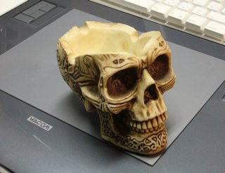 To draw the skull robot's head, I used a skull head ornament in my workplace for a reference. |