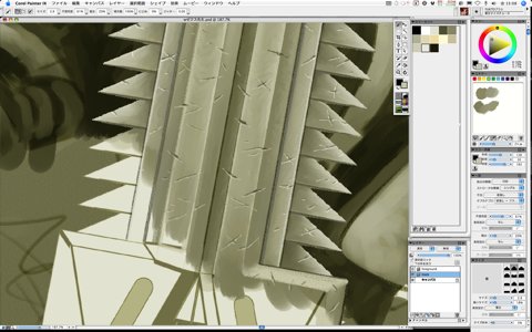 By doing this, I can concentrate on color painting without caring about color overflowing into the transparent portion of the layer.