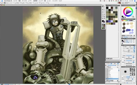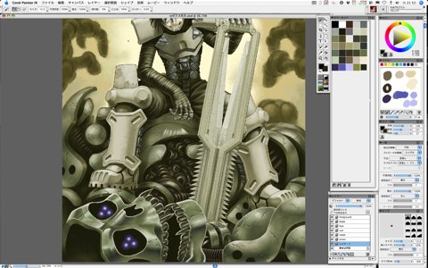 I couldn't manage to form the skull robot's hands of both sides into what I was satisfied with, so I smeared away and erased them.