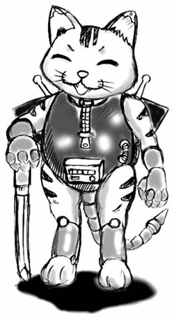 | クズ鉄街で自警団兼ヤクザの『新鮮組』を営むキャットフリーク。 猫好きのあまり、病死した愛猫の体に自分の脳を移植して 今の姿となったといわれるが真偽不明。縄張りは難民が多数居る スラム街(ザパンが保護されたあたりとか……)で、基本的に ここの治安の維持と他の地区からの食料調達(非合法なバイヤーへの 恐喝や強奪)をすることで地位を保っている。 組の構成人数は少数で、ゴンゾウ以外はそれほど腕が立つわけでは ない。基本的に前時代的ヤクザの思考の持ち主であり、 仁義と任侠を尊ぶ。ただし、姿のせいであまり真剣に話を聞いて もらえないことも多い。天念理心流の使い手であり、所持する刀 (というかドス)は長鼠猫鉄と名づけている。 また、本人曰く肩の突起から電撃が出るというが見たものは居ない。 口調:サムライ調。1人称はワシ、2人称はヌシ。 |