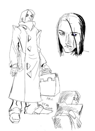 | このひとのなまえは黒龍です。 彼の仕事は医者です(ノヴァのようにナノテクもできるです)。 性格は冷静、無口なひとです。 彼の左目はなんにもの?質は古友のものです (彼の為に作った義目です)。 コートのなかにガンが多い。 そして手持ちのバッグは医寮噐具です。 火星に流浪しているんです。 |