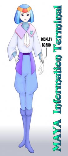 | 170cm 宇宙人風コンシェルジュロボット。 メルキゼデク・ネットにアクセスできるイエール人には必要ないが アクセスできない外国人に応対し、情報検索や案内をおこなう。 ディスプレイボードはプリントアウト付き。 でもLADDERが管理していれば、ただの外国人監視装置。 (ネットマンみたい) |