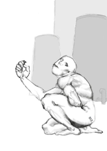 とある人体実験施設から運よく無事?に 生還することに成功した男。 臀部に013という識別ナンバーが 刻まれている。 道端に形の良い石(013の主観による)や ネジなどが落ちていると拾わずには いられない。 |
