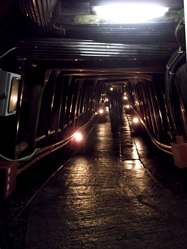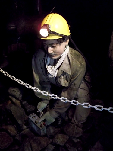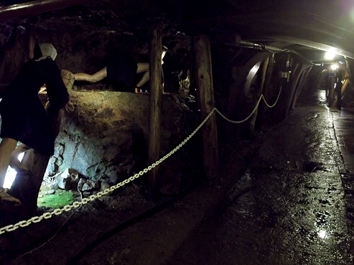 さらに進むと昭和時代になる。ダイナマイトによる発破作業の様子や、坑夫たちの食事シーンなどが人形で再現されている。坑夫たちによるリアルなバカ話まで再現されていて面白い。また通路の途中に、突然人形が設置されてたりするのでビックリする(笑)。