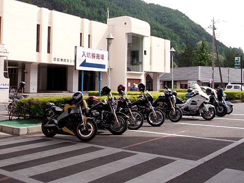 さて足尾銅山を後にして、続いてはこの近く、日光市にある「やしおの湯」という日帰り温泉施設へと向かう。走り出すと、なぜか町のあちこちに警官が立っている。原付でもおまわりさんが走ってると思ったら、対向車線には白バイも走っている。あまりにも警官が多いので「交通安全週間ってまだ続いてたんだっけ?」とか思っていると、今度は対向車線から白バイが2台並んで走ってきた。よく見ると、後ろに黒塗りのセダンとワゴン車を従えて先導していたのだった。あの警官の多さからすると、皇室関係者かよほどの要人だったのか。
