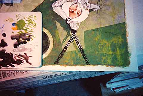 鎖部分を描いているところ。