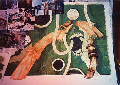 パイプ一本完成。この調子で他のパイプも描いていきます。根気がいる作業です。