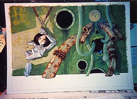 ガリィボディの着色。砂地アルミのような質感を出すためにエアブラシを使っています。