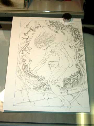 ケント紙に下書きをする。穴の向こうの雲海は主線なしで描くつもりなので下書きしていない。