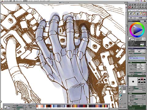 青みや明度の違う数種類のグレーを使って塗っていく。
