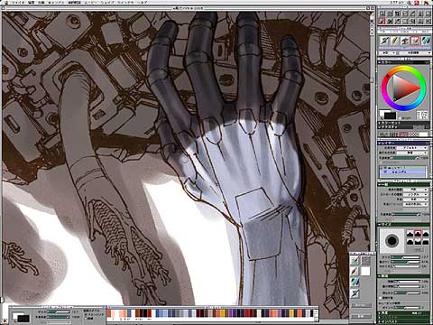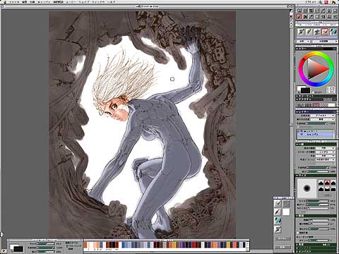 乾燥させる前に、ボディと重なってしまっている色を水彩色消しで消していく。指の先などは暗い方が背景となじむと思い、色を残す。