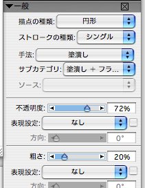 一般設定パレットの「サブカテゴリ」を「塗りつぶし+フラット+テクスチャ」にして適当な濃度のグレーでさらに線を足していく。