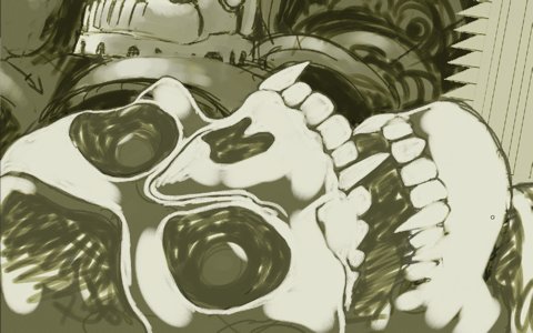 オリーブドラブのモノトーンだが、だいぶ絵らしくなってきた。