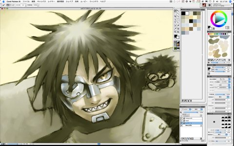 こうすることで「ブレンド」ブラシを使って下の色と塗り混ぜることが出来る。