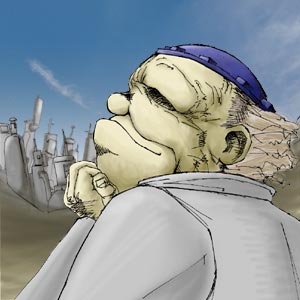 万歳塾・第39回に初登場、第41回に再登場したあと行方不明になっていた愛知県のneko塾生が奇跡的な生還を果たした。そんな御仁の新作は旧・銃夢の名バイプレーヤーで頭のフタが印象的なゴンズさんの日常の一コマ。銃夢では珍しく毒にも薬にもならないような一般市民キャラだったが、コミックス5巻の「ザパン編」にて頓死。そのあまりにあっけない最期はファンに衝撃を与えた。作品は原作を忠実に再現した線のタッチにオーソドックスな彩色で、ほのぼのとした日常をリキむことなく描いている。またゴンズさんの、平凡な日常に満足している表情も見事に再現している。実に天晴れである。ゴンズさんの御霊を追悼しつつ、再度行方不明にならないよう続けてこの調子で精進してもらいたい。