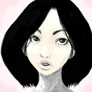 今回も出陣の南九州代表八紘一宇絵師・宮崎の鎮痛剤塾生である。作品はオエビで描き上げたあっさり目の水彩風ガリィポートレイト。このところ厚塗り系の作品が続いていた御仁だが、さすがの九州人と言えども胸焼けを起こしたようで、今回はあっさりした画風で勝負してきた。目鼻や口の東洋人系顔立ちの描写はなかなかリアルで、さらにこういった淡白な顔立ちにあっさり目の水彩着色がマッチし、スキのない仕上がり具合を見せている。髪の毛を描写せず、あえて黒ベタで落としたのも作戦勝ちと言えるだろう。まずは天晴れである。特に不満点はないのだが、もう少し内容のある絵を描いてもらえると放言もしやすいし、見ていて楽しい絵になる。その点は次回以降の精進に期待したい。