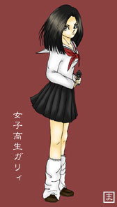コメント:これは鉛筆で下書きしたあとペンを入れてからフォトショップで取り込んで色付けしました。銃夢では絶対に見る事の出来ないガリィちゃんのセーラー服姿です。作品のイメージとしては「セーラー服と機関銃」なんですが、でも機関銃が書けないのでただの銃になってしまいました(笑)。