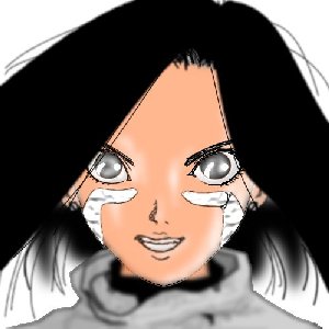 百鬼夜行殿のコメントを読んで初めて気づいた事がある。それは、マウスで絵を描く(しかない)者がいるという事実だ。うかつにも今の今まで気づかなかったのであるが、マウスできちんと絵を描くのは至難のワザであろうと思われる。この作品もそうした努力のたまものだ。顔立ちは原作を忠実に再現しており、淡い色使いの透明感が秀逸である。肩から下をぼかして立体感を出しているのも面白い。実に天晴れである。だが、実質的に肌色しかカラーを使っていないのは、さびしいかぎりである。せめて瞳の色を変えるくらいの工夫はほしい。精進である。