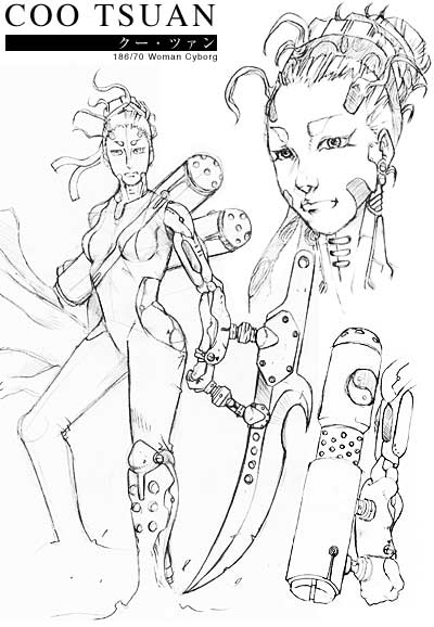| ・地球発祥の拳「アハトマスターデ」の使い手。 ※アハトマスターデ(八極拳をイメージしています) サイバネ骨法の源流とも言える地球発症の拳。 腕のギミックには、ブレードかブースターを装着。 ・ブレードの切れ味は、いまいち!! ・ブースターを装着し、拳速を加速させる。 ケイオスが、ザレムの塔を建てると知ったクー・ツァンの師は、 「人は、地面から離れては生きてはいけない(ラピュタみたいに)」 とザレムの塔建設を止めるため「アハトマストアーデ」最強の戦士 クー・ツァンをクズ鉄町におくった。 |