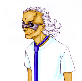 さて「精コース」キムジィ編にて予告デビューを果たした新潟のまふゆ塾生、この「進コース」Tシャツ編にも続けて登場である。こちらの新作は、白シャツにネクタイ一本というマヌケながらも完璧にマッチしたスタイルのノヴァ教授像。御仁のキムジィ編と違ってカラー線画だが、主線の運びに迷いがなく、陰影の付け方も丁寧かつ的確でかなり手慣れている印象を受ける。おそらくはアナログ画でかなり慣らしたものと思われる。またこちらもシンプル極まりない構成で、実直に自力のみで勝負している点は好感が持てる。実に天晴れである。こちらもシンプルすぎて特に欠点はないのだが、御仁の画力ならばもう少し手を加え、作品に物語性を加えることも無理ではなかろう。この作品で言えば「なぜTシャツ(にネクタイ)なのか?」ということの理由、種明かしである。洗濯のためにイーライにはぎ取られたとか、色々と想像出来るはずだ。画力向上と共にそういう部分の精進も期待したい。