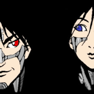 すでに今回の精進祭り「精」コース・キムジィ編でトップ精進を果たしている宮崎の鎮痛剤塾生、こちら「祭」コース・ゼクス&ガリィ編にも参戦である。これで早くも全コース制覇へ向けて王手をかけた格好だ。作品はゼクスとガリィの横並びイラストだが、単純に見えてピカリとセンスが光る一品。髪の毛をバックの黒にとけ込ませて心理的描写に持ち込む手法は漫画などでよく使われるテクニックだが、セリフのないイラスト作品においても効果的に用いているのは見事。またゼクスに対してガリィがやや上に位置しているのは精神的な優位を表しているわけだが、これは構図的にも右上から左下への流れを作ることになり、結果的に完成度を高めることにつながっている。実に見事、実に天晴れなのである。今回はオエビ作品であることは意識せず放言したが、「弘法筆を選ばず」のたとえ通り絵を描くのにツールは問題ではないということがわかる一枚である。今後も熱く冷静に精進である。