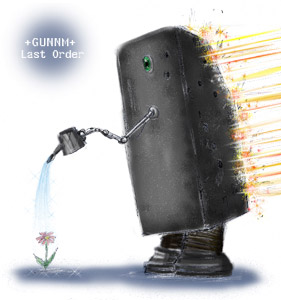 カエルラコースに引き続き、回遊魚隊員・東京都のアトラ隊員がロボ王国コースにも参戦。半年や一年の音信不通を得意技とする御仁の作品が一度にふたつも見られるのは非常に貴重である。さてそんな御仁の作品は、銃夢LOコミックス3巻・PHASE:15の表紙にだけ登場する壁ロボット。この題材も思いっきり意表を突かれたが、さらにこのロボが花を育てているシーンと言うのが目頭を熱くする。どこで花を育てているのか、銃で撃たれて弾痕だらけの姿が痛々しい。しかしまったく動じずに水をあげているのが微笑ましくもある。色々と想像をかき立てられる作品として、実に天晴れである。壁ロボのボディのコンクリート感も見事で、個人的なお気に入りとして「塾長賞」を進呈する。次の回遊がいつ終わるのか見当もつかないが、世界中を回って再び隊に無事戻ってくることを祈る。自分だけの花を育てるのも精進である。