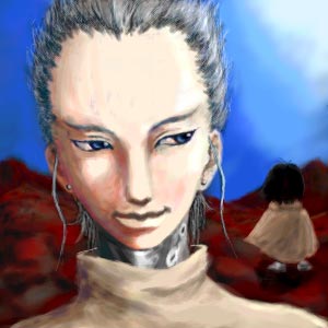カエルラコースに続いて登場の九州人期待の星・宮崎の鎮痛剤隊員が本コースにも特攻志願である。火星コースの新作は、火星の大地にたたずむ機甲術師範のゲルダと幼少時の陽子。ゲルダは肩から上、陽子はマントの後ろ姿だが、火星の荒野をきちんと描いているところがポイントと言えるだろう。ゲルダを中心とした構図はわかりやすく、また髪の毛などの細部の描写もがんばっている。なかなか実に天晴れである。ただ陽子とゲルダの距離感、また背景の距離感が今ひとつわかりにくいのが難点。どのくらいの距離があるのかは、描く前にきちんと考えて把握しておかないとこういう絵では馬脚を現すことになるので注意。ついでに陽子の全身像について「(いささか反則気味)」などと白々しい言い訳をしているが、これは「いささか」も「気味」もいらぬ、単なる「反則」である。精進隊隊員に言い訳は無用。言い訳しているヒマがあったら精進である。