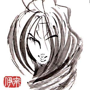 こちらはもはや毎度おなじみの万歳塾常連、東京都から参戦のステルス絵師代表・take3研究員である。この御仁、実はつい2回前の似顔絵万歳にてイーライを描いたばかりだったので、また同じお題ではつらかろうと思っていた。ところがである。なんと習字の筆で薄墨で描くという一発芸で挑んできた。やや下の方の線が重なって煩雑になってしまっているが、筆の勢いと墨の渋みが相まって和の美しさを構築している。名前の印も見事に調和しており、今回は実に天晴れという他ない。こんなところで出しちゃっていいのかちょっと悩むが、まあ今回は「技能賞」進呈である。実は館長である私が、習字が苦手なためにこういう一発芸に弱いというのは君たちだけに教える特別なヒミツだ。ただし一発芸ばかり連発すると評価が下がるので注意。部屋の片づけも時には精進である。