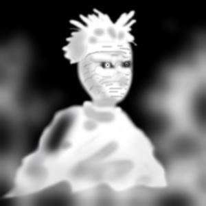 今回久々に登場するのは、前回の精進祭りでデビューを飾った直後に行方をくらませていた精進祭り回遊組・京都の猫玄奘研究員である。そのエアブラシを使った抑揚のない主線、全体的にボカシがかかったような味のある絵で知られる研究員だ。さてここはザパンコース、従って作品はザパンなわけだが、かつてこれほどかわいらしいザパンがあっただろうか。まるで包帯を巻いたてるてる坊主か、セ●ミストリートの新キャラかというほど愛嬌がある。作品タイトルやコメントにもあるように、原作の絵を見ないで記憶力だけで描いたようだが、この記憶力アレンジは素晴らしい、実に天晴れという他ない。今回は特別に「塾長賞」進呈である。何事も見た通りにやれば良いわけではないという見本のような作品だが、これはそう簡単にできることではない。研究員はこの能力を伸ばし、さらに研究に励んでもらいたい。30過ぎると物忘れが激しくなるのも精進である。