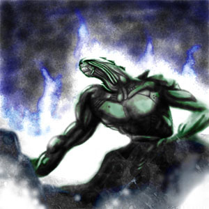 イーライコースに続いて参戦の、万歳塾が誇るステルス若大将・東京都のtake3研究員である。デビュー以来、怒濤の連続精進を続けて着実に画力を上げてきている頼もしい研究員だ。本コース参加作品は、旧・銃夢中盤の山場となるザパン編のバーサーカーザパン。水彩のぼかしを効かしつつも、ポイント部分は黒系の強い色を使ってしっかりと描いている。またキャンバス地の白を残すことで空気感も演出。深みと静かな迫力を見事に描写している。実に天晴れである。今回は余計なコメントもなく、逆にツッコミどころも少ないが、まじめに精進している作品を見るのは塾長として実に喜ばしい。今後もこの調子できばってもらいたい。探し物が見つからなくても落ち着いて精進である。
